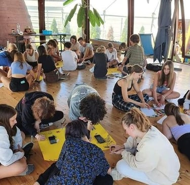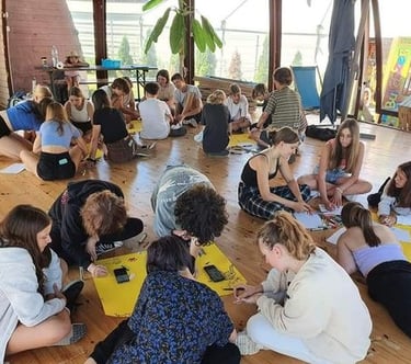 Thank you to Catt Sa for "Drago and His Loneliness" (we felt how important and broad this topic is, even among the youngest youth). Marzena for "BUTTONS," a wonderful, cheerful, and colorful workshop for the youngest; Kasia for the beautiful, challenging "MANDALAS"—their meanings and drawings; Karolina Herra-Hładki for the MACRAME, lanterns, and bookmarks—they turned out wonderfully; the boys' enthusiasm in this area was impressive!